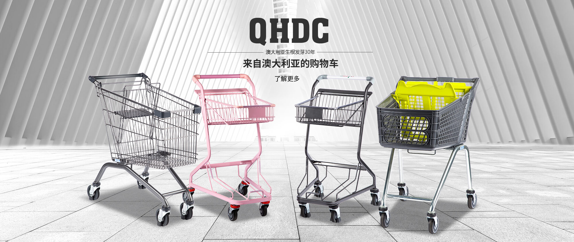 我們公司在澳大利亞生根發(fā)芽30年,現(xiàn)如今在澳洲購物車市場占有率達到90%以上。QHDC公司生產的購物車,在澳洲就是為高端需求界定了標準。